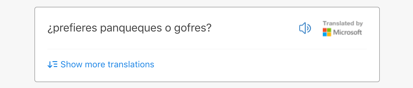 We changed our default view to show only Microsoft’s translation. We would reveal the other two translations only if a user clicked “Show more translations.” For this update, we added click tracking to confirm that only a small fraction of users wanted to see additional translations. If too many users clicked to see all three, we could reverse the change.